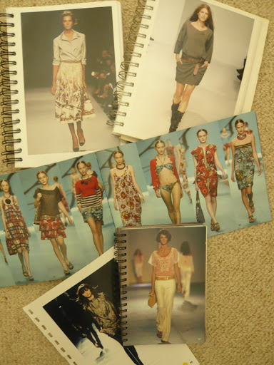 They're all REALLY old lookbooks… like, at least 5-7 years old. From top to bottom…Prada, Callaghan (when Nicolas Ghesquiere designed there!… wow, ancient by now), Cacharel (the colourful "African" collection), then I think Givenchy.. and Chloe.