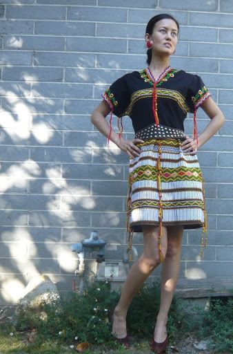 If you’ve had enough time on your hands to be idly perusing this blog, then 1), you probably have less of a life than me, and 2), you probably will have noticed a recurring thread, ie I LOVE ETHNIC STUFF. Most of the time, though, I don’t like to wear it in its original state, partly because then it would look like I’m playing dress-ups but also because I have the (bad?) habit of NOT BEING ABLE TO LEAVE STUFF ALONE. I got this dress from a friend’s friend who couldn’t work out what to do with it but knew how much I love fiddling with stuff (she also bought me a silk skirt for $1 which I’m yet to attack). I’m fairly sure it’s from somewhere in south-east Asia, like one of the hill tribes in Thailand, as I have a top from there that’s fairly similar (and is also waiting to be fiddled with). Anyway, here are the before/after shots – it was originally like a long tunic covered in embroidery and fringing, and I made it shorter, fitted the top section, put a zip in the back and plaited the fringing so that it wouldn’t keep getting into my food/eyes/stuck in zips and car doors. The studded belt was from the Salvos for $3 and my heels were