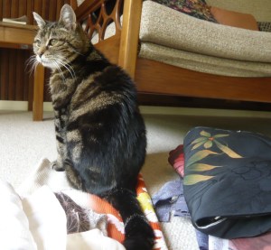 Gorgeous fabrics – I want to steal them all, especially the one with the feathers! Suki knows that she makes the material look better, she's definitely posing!