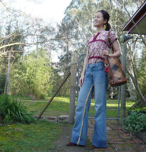 He also had to put a cloth patch (like one of those souvenir ones travellers sew onto their backpacks) on the butt because it’s wearing thin, but I forgot to take shots of that so you’ll just have to imagine it. The patch I mean, not my butt. At this stage I’m sure you’re thinking that he remade these jeans with tender loving care just for me, but you’d be wrong. He made them for himself before we even met. Yes, he wore them, ie we are the same size. In fact some of my jeans were a bit too big for him. Scary, but true. However as soon as he saw how much better these looked on me, he relinquished them, which was, I’m sure you’ll agree, the only sensible thing to do.