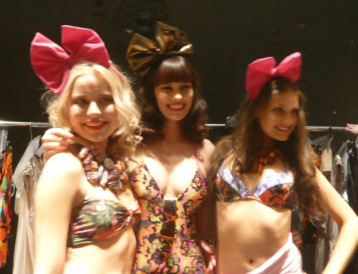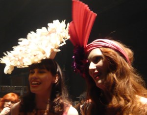 The first night of Fashion Week went off with a bang (or a bark?) at the Fox FM show at the Forum Theatre last night… you can see official photos here – I have to admit I really did not see much of the show at all, but did manage to take some blurry backstage shots in between jamming shoes onto models’ feet and straightening headpieces and just generally panicking but having a great time. There were three main parts to the show, swimwear, evening wear, and race wear, with bits by the Fox FM presenters and competition winners in between.
