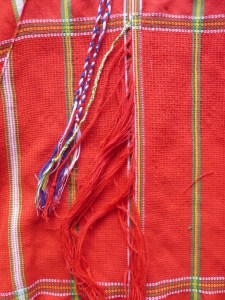 And although I love the fringing, it is going to knot and drive me crazy so I have started the long task of plaiting it. The red, white and blue threads were plaited already, but there’s still a lot to do.