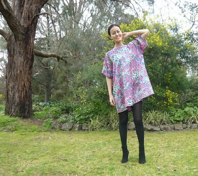 I had to remove some weird flappy details that were sewn into the sleeve/body seam, and I chopped off quite a bit of the hem and made some other minor adjustments, and now it’s a cute and colourful A-line tunicky thing that is perfect for when I can’t be bothered sucking my stomach in all day.
