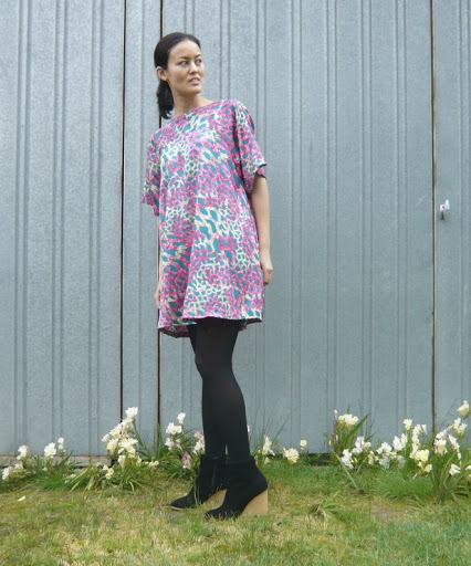 I had to remove some weird flappy details that were sewn into the sleeve/body seam, and I chopped off quite a bit of the hem and made some other minor adjustments, and now it’s a cute and colourful A-line tunicky thing that is perfect for when I can’t be bothered sucking my stomach in all day.
