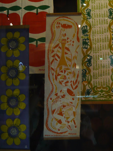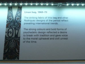 After a lovely brunch enjoying the sunshine with old school friends at Mr Tulk (brunch! Mr Tulk! Can you believe how cool I am?!) I got a horrible hair cut and went to the Melbourne Museum. About two years ago my mum contributed some family photos for a project the museum was doing so she got some free passes. I hadn’t used mine yet but decided I should go and check out an exhibition on textile designer John Rodriquez. Disappointingly, there are only two windows showcasing his work – here are a few shots.