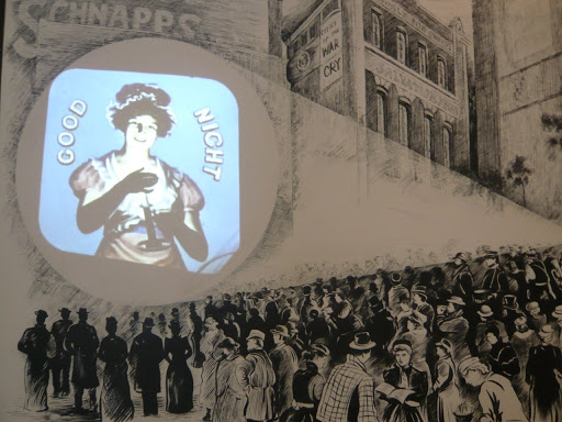 and last but not least, for your viewing pleasure, a display demonstrating old-school multi media entertainment (projections onto walls)