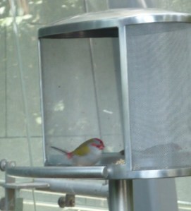 There’s quite a few birds flitting around the forest, including tiny little finches like these. I would have preferred a shot of them among the ferns but they were just too speedy for me, so here they are at their feeding containers.
