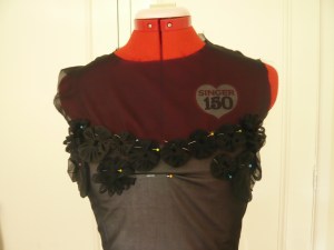 As the chiffon-y stuff (nylon??) was very sheer, I needed to put something underneath, but not having any basic black to use as lining, I had to beg an old white inner sheet from my mum… (cost = nothing) … and yes, I realise it’s quite see-through! Thank goodness for skin-coloured undies!