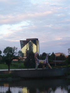 These last two pics are just to show off more of the scenery along the river – this building reflecting the sunset was so shiny!! And I can never resist shiny!