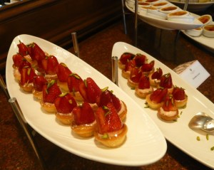 That’s right, Valrhona chocolate brownies and strawberry tarts and mini creme brulees as far as the eye could see… and that was just the dessert bar. I should have seen it coming – the job was at a FOOD EXPO at the LANGHAM HOTEL (famous for its afternoon teas) after all!