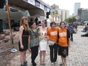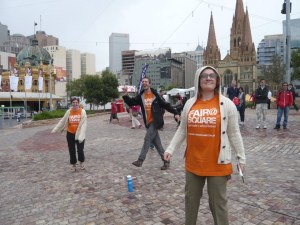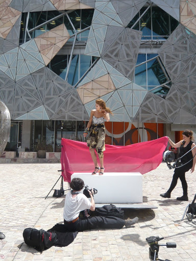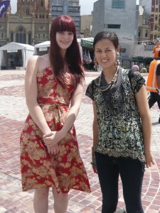 Finally 2:45pm rolled around and it was time to show the people of Melbourne (and the world, thanks to this blogging biz!) what we were all about. The models and volunteers were all in good spirits and there was even time to sit around having a joke.