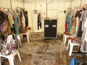 I arrived at Federation Square on the morning of Sunday, Dec 12, and headed to the dressing tent at the side of the stage – the show was held outside so “backstage” was a slightly primitive and intimate (read: squashy) affair, made more difficult by several torrential downpours throughout the day which sent rivers running through the tent. I tried to keep the models’ feet slightly dry by laying down huge plastic garbage bags. Aah, fashion. Always so glamorous!