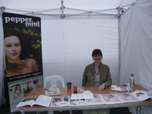 After getting the tent ready, Fabia and I had a wander around the rest of the festival. We visited lovely Lou at the Peppermint tent (new issue on sale now!! Buy! Buy!)...