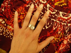 The jewellery lady also sold me this ring which is basically a strip of metal with a diamondy-ball thing stuck to it.
