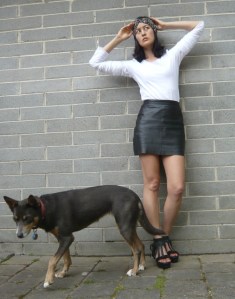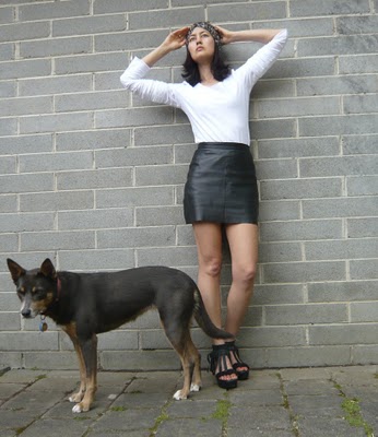 This fringing idea was really easy and did not even involve buying any extra materials. A few years ago I bought a black leather skirt (from an op shop, of course) which was too long, so I cut off some of the hem. Voila, mini skirt, modelled with a top I made and a headscarf (naturally, also from an op shop).