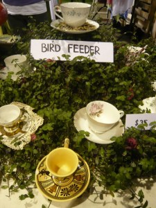 These cute cup-and-saucer bird feeders attach to poles that you can stick into your garden bed. I don’t think they’d be quite sturdy enough (or large enough) for the naughty birds that I know, but dainty little seed-nibblers might like them. Both the shoes and the bird feeders will be available on this site in a little while.