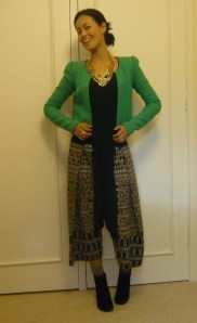 That green jacket is fabulous! I would love it as an addition to my closet!!! I am also seriously considering buying one of those statement nacklaces by Sollis. Thet'd be great with a LBD. Your style is bar none one of the best! I don't think any style blogger I know dresses quite like you.