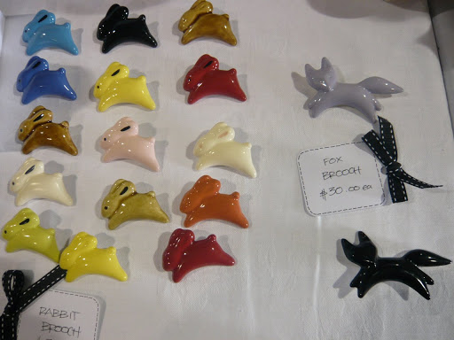 Some cute animal brooches… it looks like the foxes are after the rabbits…