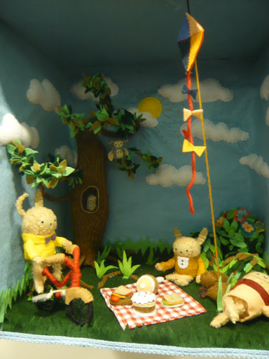 They like to have picnics, just like us. (Isn’t the sleeping owl in the tree trunk adorable?)