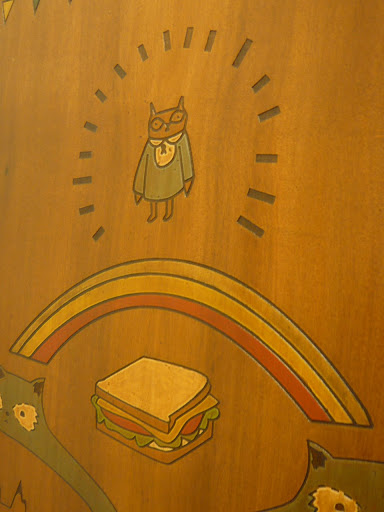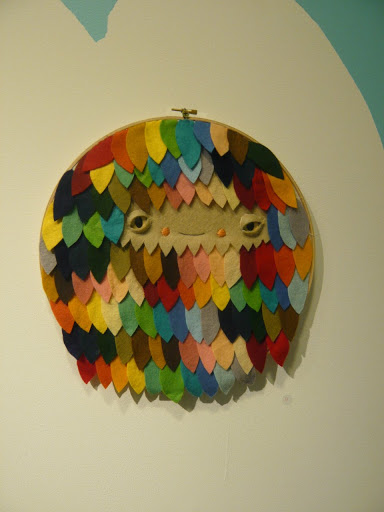 Cat Rabbit is so multi-talented that she can make softies out of felt and other fabrics, as well as carve pictures into wood and make more 2D style wall hangings.