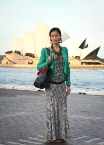 So much so that I had each day’s look worked out in advance, right down to the accessories. That NEVER happens when I’m at home – the Melbourne weather’s too unpredictable, for one reason, and where’s the fun in working out what you’re going to wear days in advance? Plus, no fashionista worth her salt would admit to anything like that. It’s the unwritten rule that every outfit has to have been “just thrown on” at the last minute, if anyone asks. But I’m thinking that it might be a good idea to plan more, even when I’m not going anywhere, because it means I have a bit more time to be creative with my look. I would never have put these prints together normally but I was quite happy with the result.