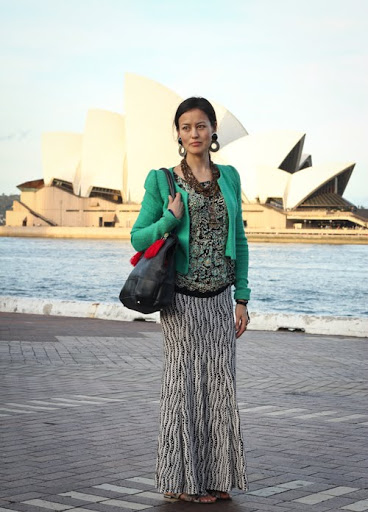 You look -as always- fabulous! Bummer! You were in Sydney?? Would have loved to meet up with you! …and I most certainly plan my outfits… the accessories are more…hmmm… organic, on the day decision and I usually pre-plan 'the foundation' (eg. I will wear that vintage ballgown skirt with that opera length velvet cape or cropped white tuxedo and maybe that 70s alumesh backless hanky top or that fishnet bodysuit or maybe just strands of pearls…) and then let inspiration strike as I get ready. So I applaud you.How tall are you? You look so long and lean but I know you're tiny. AND… you're the Fash Ed for Peppermint!! That's wonderful!!