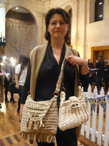 I also met Gwen Van Overbeke who is the founder of Hoooked Zpagetti. You should definitely check out the site: zpagetti is yarn made from fabric offcuts that you can knit or crochet into all sorts of fabulous things like these handbags.