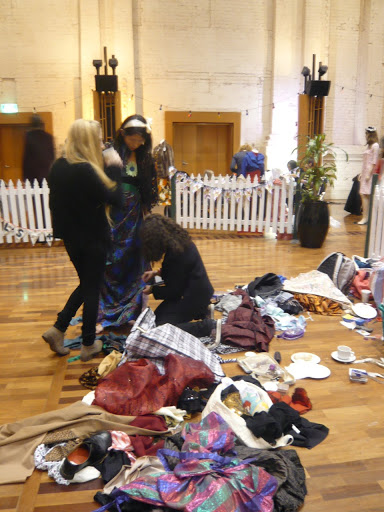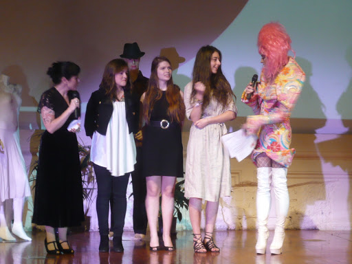 Another group of high school students modelled outfits they found in op shops too. Here they are chatting with drag queen Kaye Sera, who apparently makes a lot of her outfits from offcuts from a futon factory!