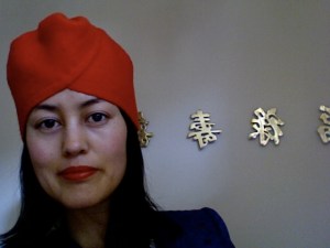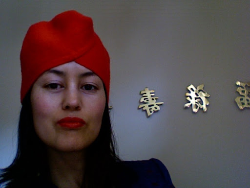Yes, for a change this post is exactly as the title says. No puns! Just new red lipstick (being something of a lipstick virgin, am still struggling with getting it to stay on my lips) and a new red turban that I made myself. And back-to-front Chinese characters thanks to the Photo Booth function on my MacBook snapping things in mirror image.