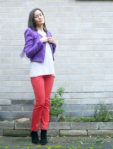 Not bad for $5, hey? And now I have something more interesting than jeans to wear with this jacket that I made last year! Injecting some colour into your wardrobe definitely boosts your mood – give it a try when work’s getting you down!