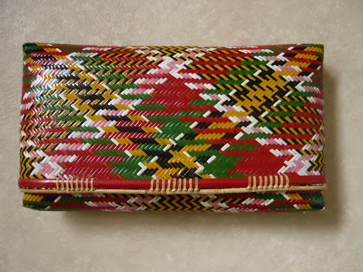 Woven straw clutch that I found at the Salvos in Forest Hill, $4. So colourful!