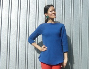 No! It’s not a representation of lady bits in felt like you’d see all over Regretsy!! It’s an underarm gusset that I inserted to make the cape into a top after I cut sleeves into it as you saw last week. I had to trim a bit off the sides of the body as the top was too A-line, so I used that excess to make the gussets. Not quite as exciting as lady bits in felt, but it means I have a new top!