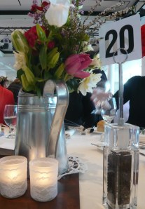 There was a bit of a lace theme for the table settings… not sure if you can see but there is lace wrapped around the candle holders, an easy idea that home decorators could try for their next party!