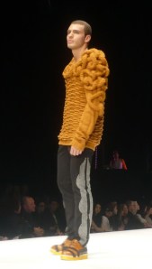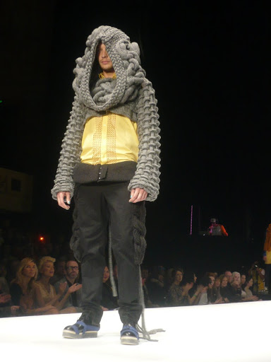 His textured knitwear was nothing short of fabulous. I had actually seen this jumper on a female model in a photo at the exhibition I went to the other day, so it could definitely work as a mini dress.