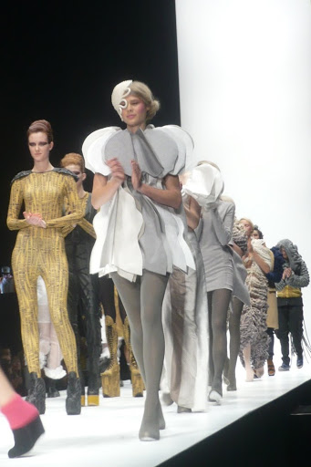 Well, continuing with the theme of out-of-date blog posts, allow me to present you with something that happened last weekend, which, as you would know, is an eternity in the blogging world. Sorry! Anyway, this is the RMIT student runway show – the first one. There were two shows with 15 students in each of them showing 5 outfits each, but this is just a little selection from the first show.