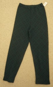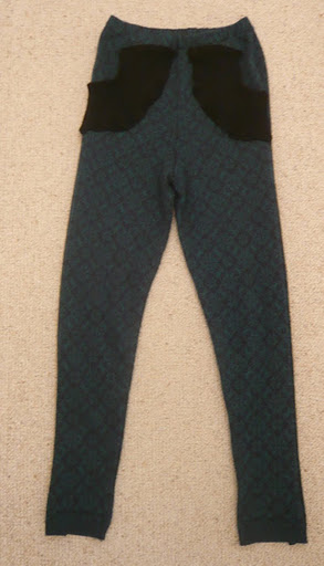 So, it’s theoretically spring here in Melbourne, but in true crazy Melbourne style, today was more like mid-winter. Seeing as I had mountains of writing work to get through, the rain and cold didn’t bother me. And of course because I had mountains of writing work to get through, I decided to fix up some leggings that I bought at Vinnies a few months ago. Here’s what they looked like originally: