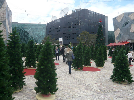 Yes, it’s that time of year again. The Fair@Square fashion show is over, so I can finally get back to the blogging (more on that, with pics, in a future post!) and it’s just a few weeks until Christmas, which for most people means running around buying presents (preferably through a pine forest like this one that has sprung up at Federation Square!).