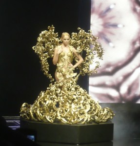 As I was a naughty blogger who hadn’t done her homework, I knew nothing about Tex Saverio, but I sat watching the show thinking “I bet Lady Gaga would LOVE this stuff”. Turns out my celeb/designer matchmaking radar is spot on, albeit a little late, as Tex has already created a costume for her!!