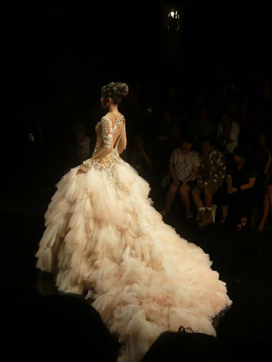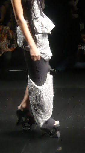 The models were all walking excruciatingly slowly and the audience held its collective breath the entire show. There was applause every time a model made it safely back to the top of the catwalk. Kind of crazy, but then they are called fashion shows for a reason, I suppose.