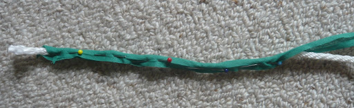 Simply wrap the binding around the cord and stitch it using the zipper foot on the machine, and (theoretically) hey presto, you’ve got piping at whatever width you like it instead of having to buy from the limited range on offer at the shops (and this way you can use up bits of material too, if you don’t have a shoebox full of bias binding like I do).