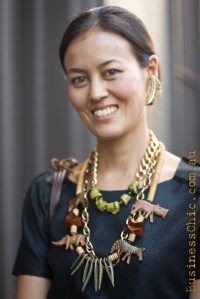 As usual, all my accessories are from markets or op shops, except the chain necklace with green coral which I made myself. If you want to see more on my outfit, head over to the BusinessChic site! There’s always lots of stylish ladies (and gents) to check out over there!