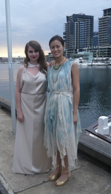 I kind of went for the water nymph look but my hair isn’t long and flowing enough to really pull it off successfully. Whereas Lady Melbourne, who was also wearing a dress by Georgia (previously worn by Kyra), managed an old Hollywood glam look very well. See?