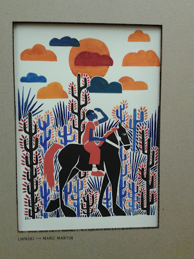 I love the colours in this piece and the bold lines. And there’s cacti in it, which makes it look kind of Mexican.