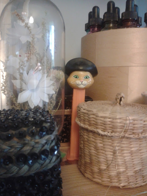 What a lovely space! I always like looking at the workspaces of creative people … especially when they like cats! đ