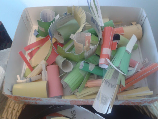 These are scraps of paint-sample paper that Yuko uses to trial shapes for her jewellery! Love it when people find new ways to use things that might otherwise get thrown out.