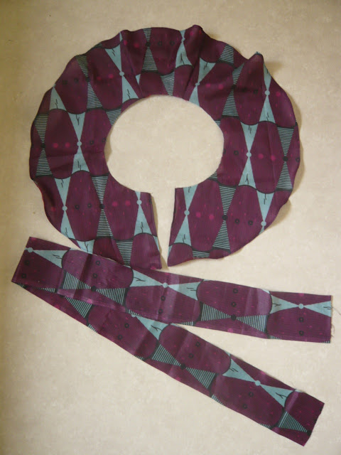 1. Cut a circle about 20cm wide (or as long as you want the peplum). The inner hole needs to be a bit bigger than your waist measurement – if you divide your waist measurement by about 6 you should get the radius of the inner circle. Also cut a long strip of fabric about 8cm wide and long enough to be able to tie in a bow at your waist.