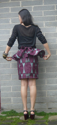 You might remember I mentioned I have been doing a patternmaking course which involved us drafting a basic skirt based on our own measurements. We were meant to make it in plain calico, but you can guess what I thought about that idea. Why use plain fabric when you could use print? Anyway, the basic skirt looks like this – quite appropriate even for office wear, as my geek-girl glasses are meant to be indicating.