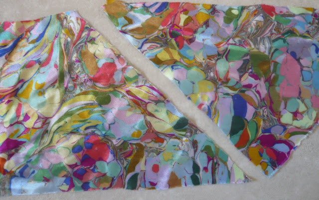 Well known among my friends for never being able to throw anything out, I couldn’t resist when one of them invited me to take on some material that her grandma was getting rid of. Look at the gorgeous marbled colours – would you have been able to say no to this?