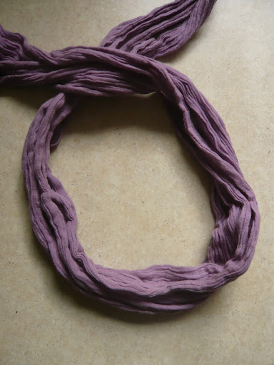 Then tuck the ends under the rest of the scarf, and you’re finished! If you like, you can stitch the ends in place so you don’t have to do the wrapping thing every time, although this might not work so well unless the material is a bit stretchy.