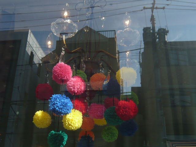 I started getting reacquainted with my adopted home town today with a stroll along Cat Street (no, not just because I’m a crazy cat lady! Cat Street has heaps of little shops along it and it is one of the back ways to get from Harajuku to Shibuya). Loved this idea for a pom pom chandelier, from the window in Another Edition.